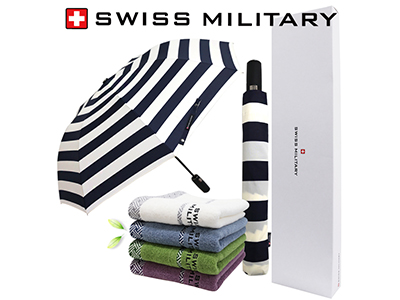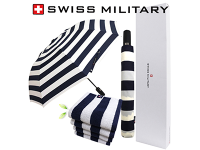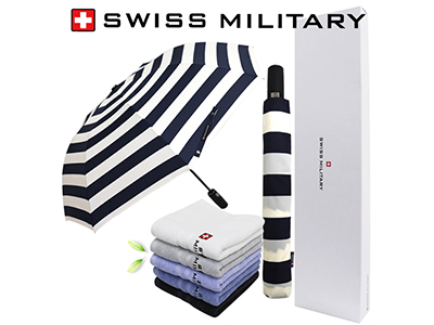 - 스위스밀리터리 3단수동 네이비스트라이프+바스타올+175g선염타올 1P 세트(소)