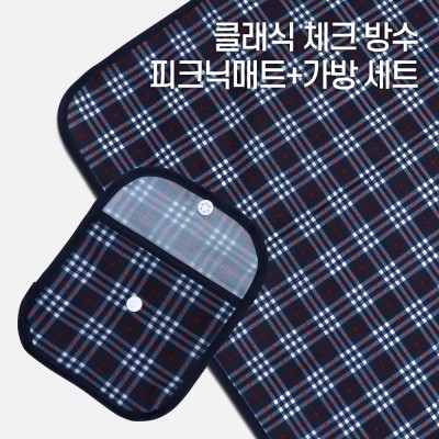 - [국내제작] 클래식 체크 양면방수 피크닉매트+파우치 세트