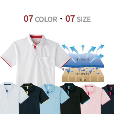 - 기능성 원단 드라이 폴로 카라 반팔 주머니 티셔츠