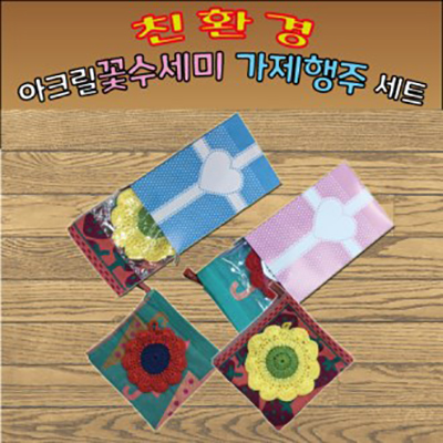 - 아크릴꽃수세미가제행주세트/친환경수세미행주세트/수세미행주세트
