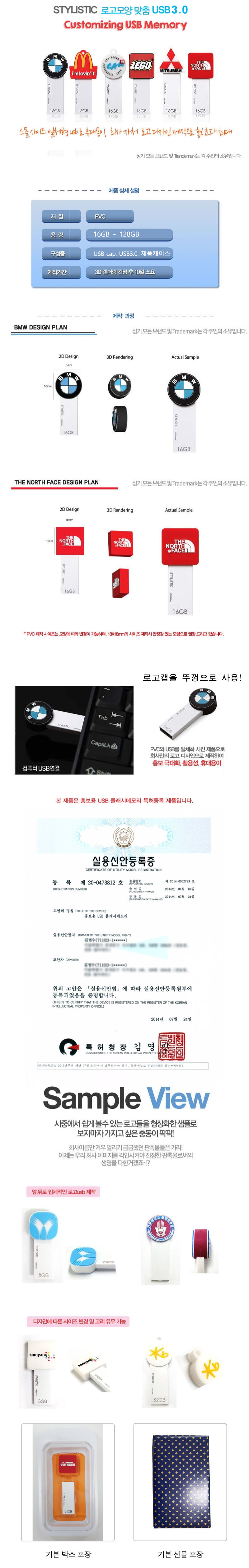 [로고맞춤형] 스타일리스틱 DIY 고객맞춤 USB3.0 메모리 (16GB~128GB)
