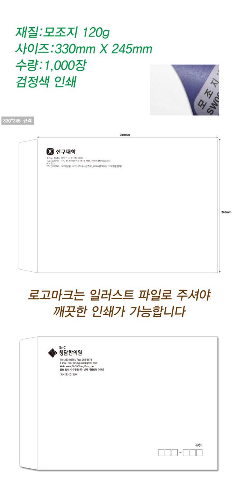 먹1도인쇄 규격대봉투(모조지120g)