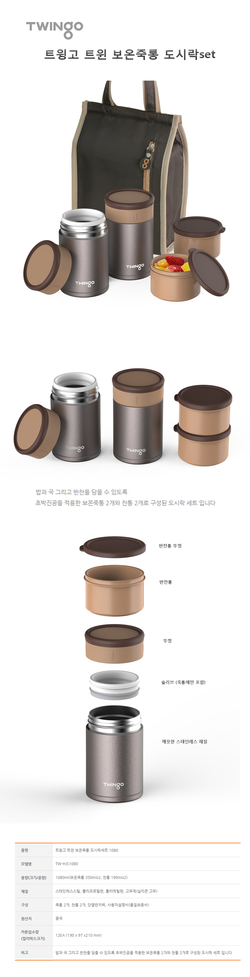 트윙고 트윈 보온죽통도시락 set 1080