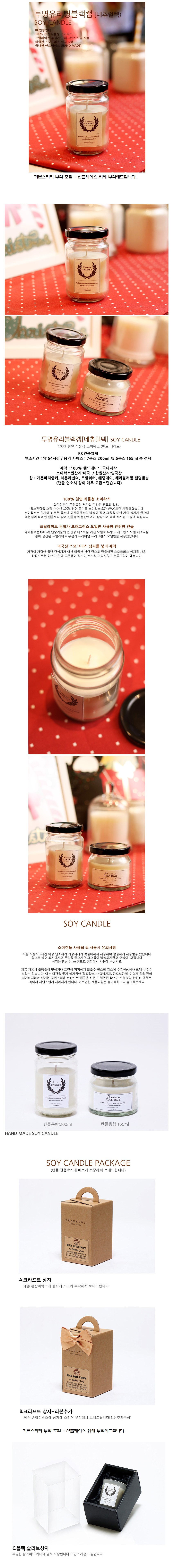 소이캔들 유리병 블랙캡 200ml 내추럴텍