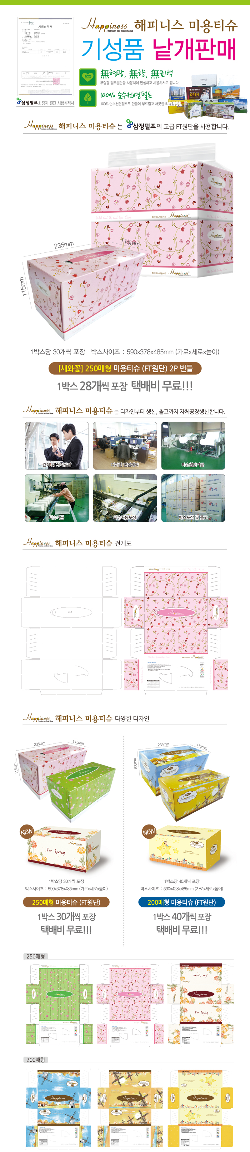 해피니스 미용티슈 (250매) 새와꽃 2P