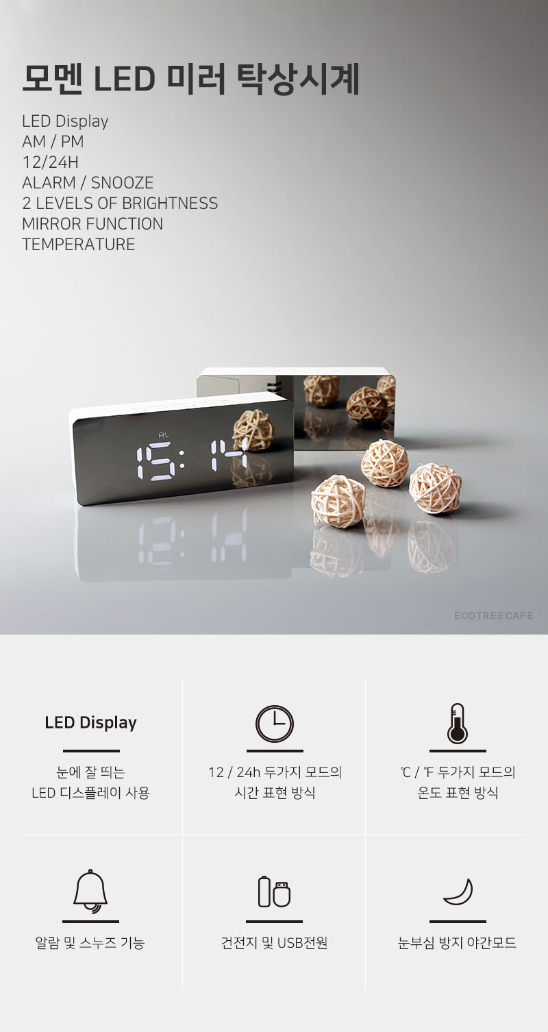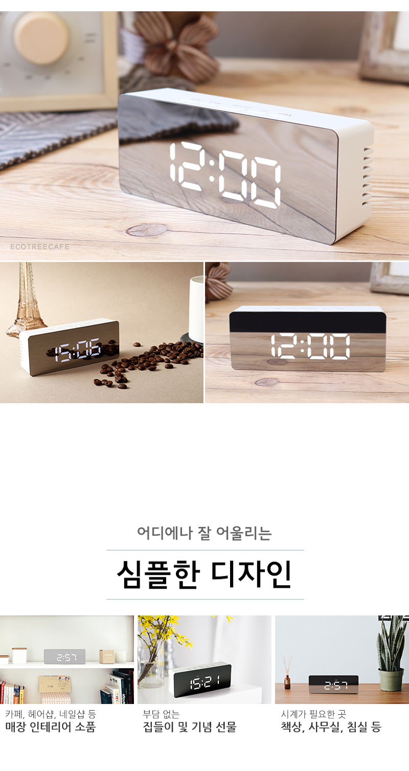 인테리어 소품으로 인기있는 심플한디자인의 LED미러 탁상시계