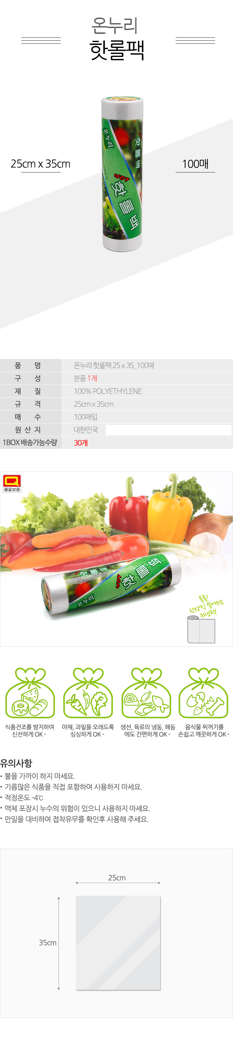 온누리핫롤팩 100매