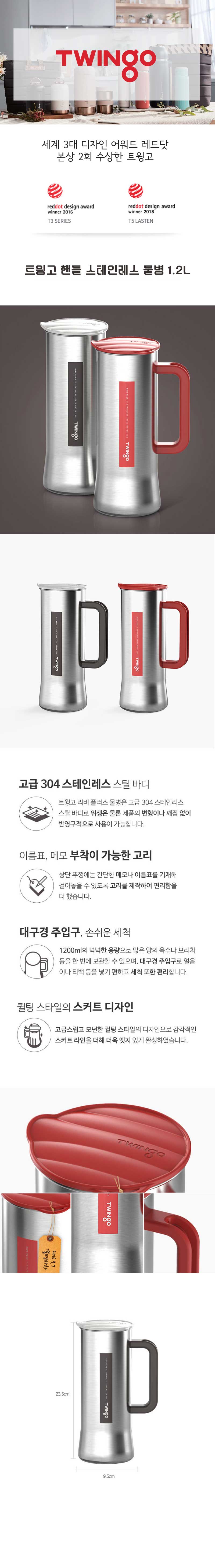 트윙고 핸들스텐물병 1.2L