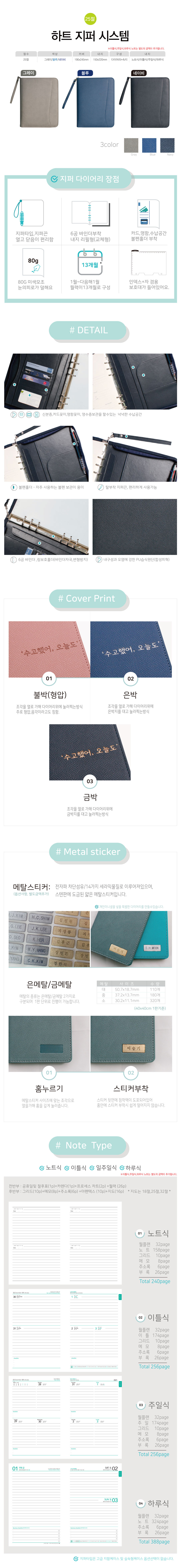 25절 하트 지퍼 시스템 다이어리
