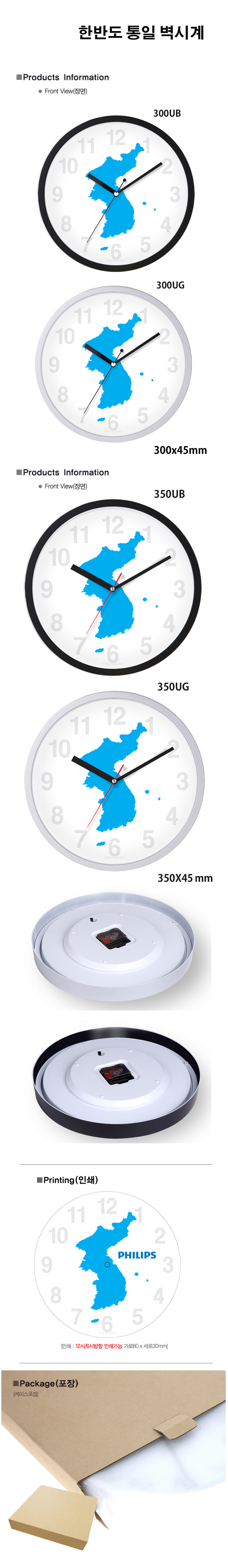 한반도통일 벽시계 블랙 300UB/300UG/350UB/350UG