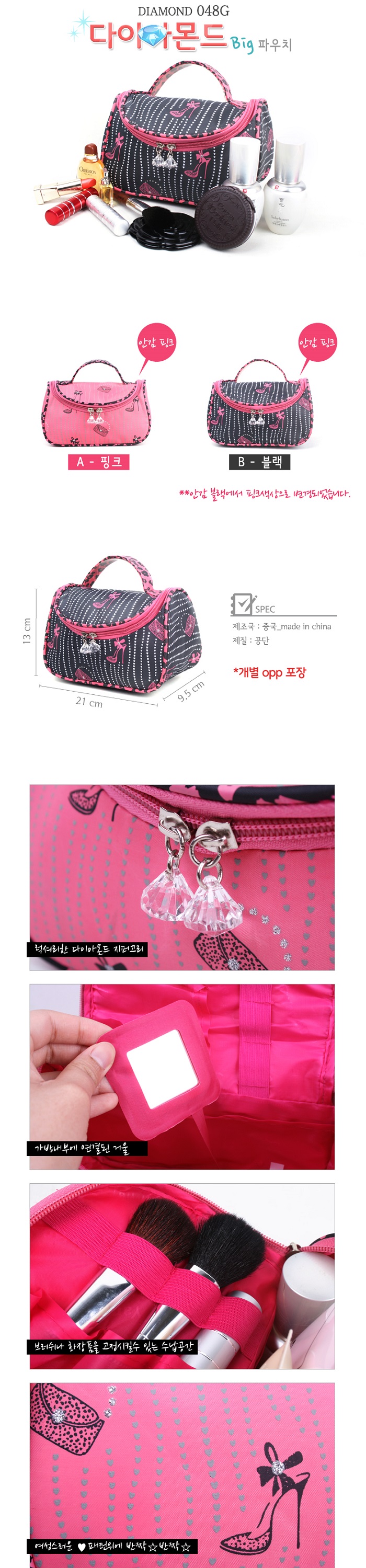 다이아몬드 빅 파우치 - 2종색상 - 거울포함(빅사이즈) [PH074]
