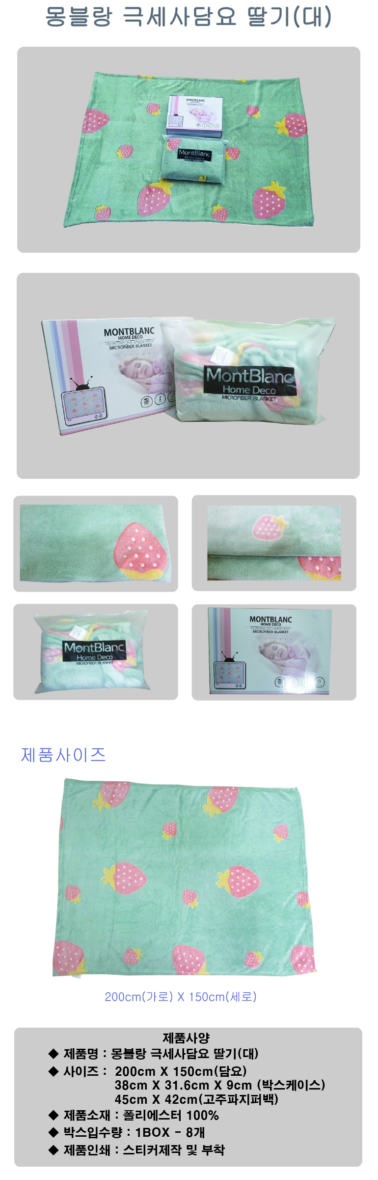 몽블랑 극세사담요 딸기(대) 200CM X 150CM