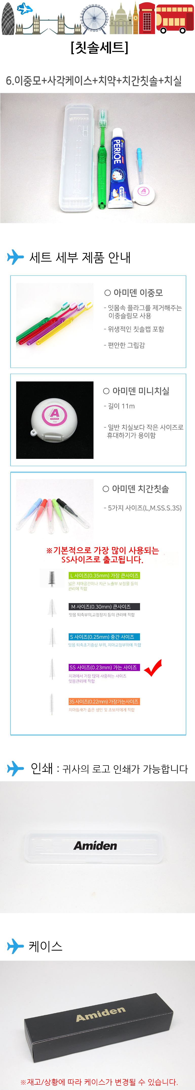 [칫솔세트6] 이중모+사각케이스+치약+치간칫솔+치실
