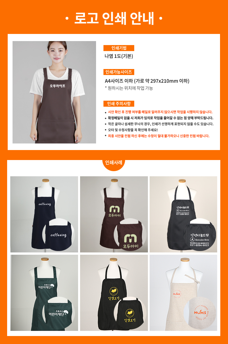 [오투라이프 에이프런] 손님용 배색 앞치마 (와이드형)