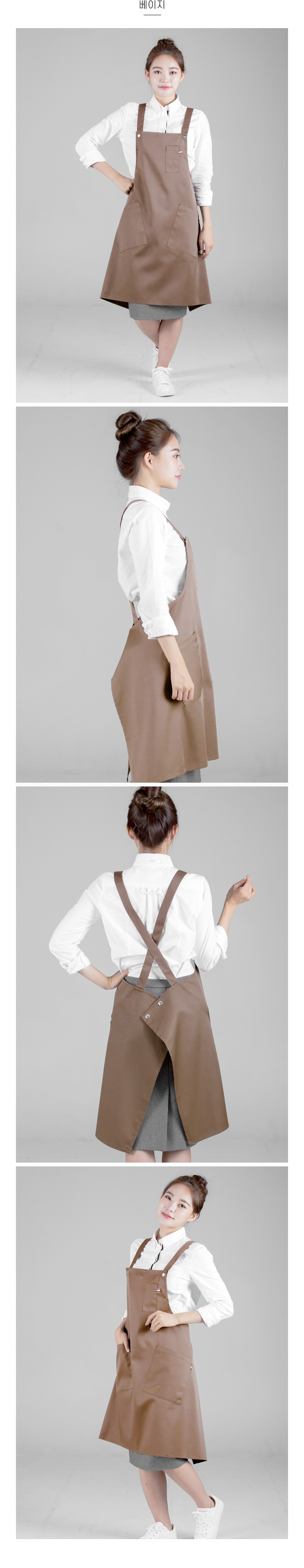 스냅단추로 어깨끈 사이즈 조절이 가능한 다용도 앞치마, 바리스타용,공방,주방,작업실,네일샵,미술용 등으로 다양하게 입을 수 있습니다.
