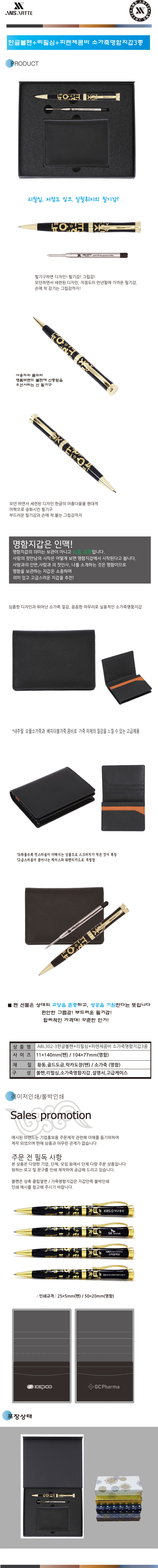한글볼펜+리필심+피렌체콤비 소가죽명함지갑3종
