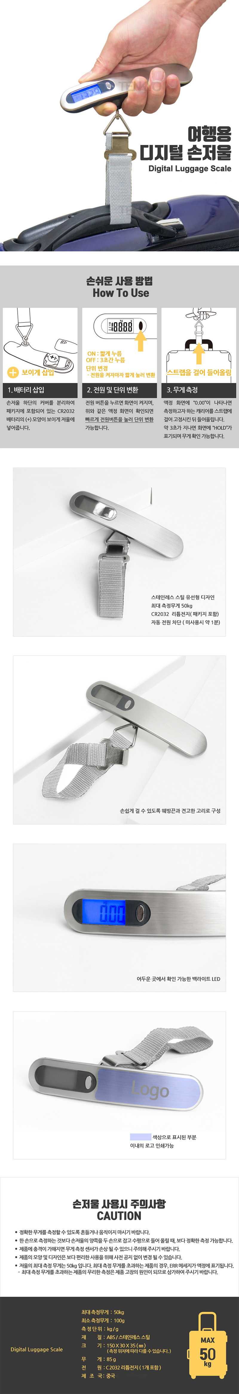 여행용 휴대용 디지털 전자 손저울 50KG