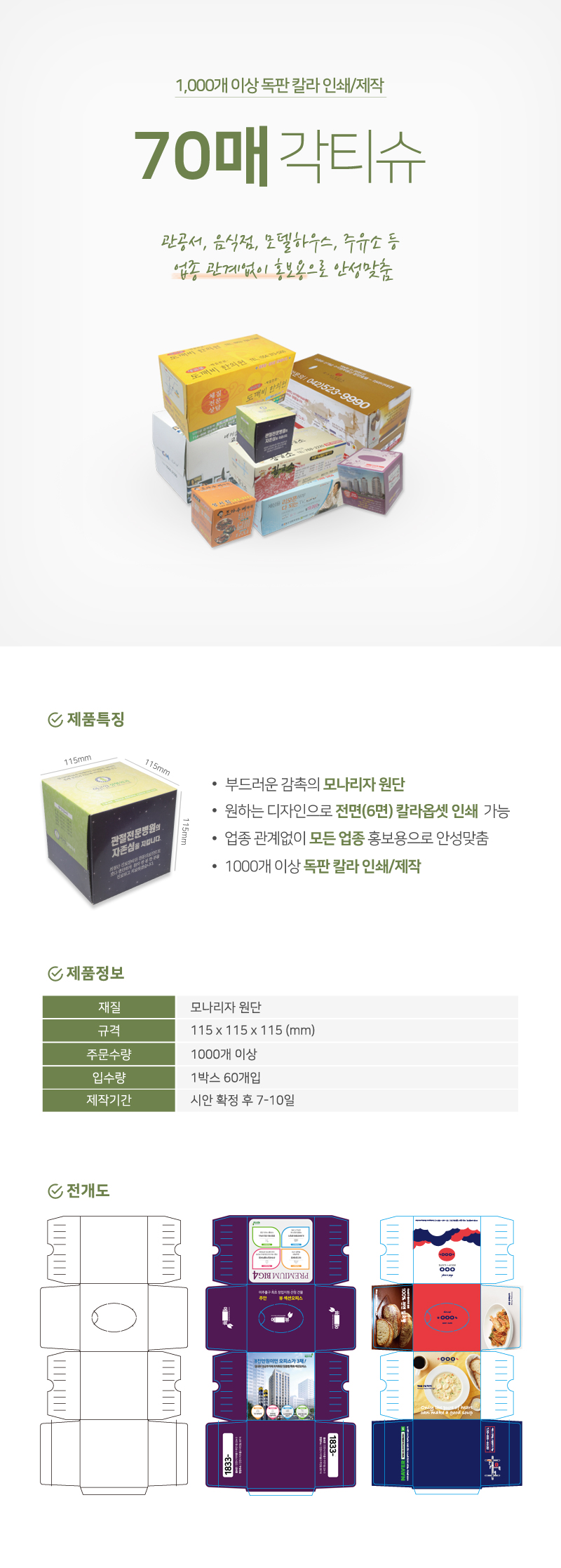 독판인쇄 각티슈 (70매) -기본수량 1천개