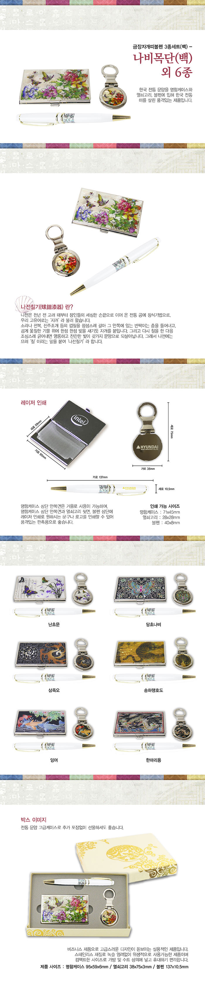 금장볼펜3종세트(백)-나비목단백 외 6종