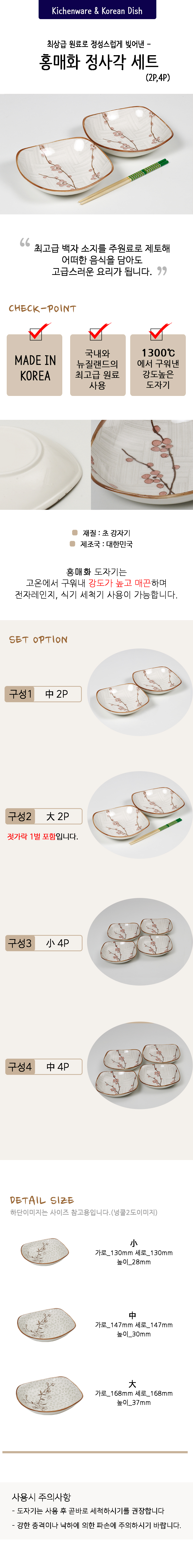 홍매화 정사각 4P세트(小 中)
