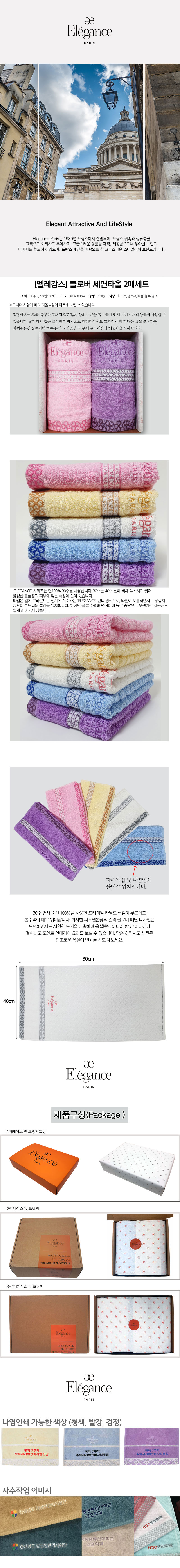 엘레강스 클로버 세면타올 2매 세트
