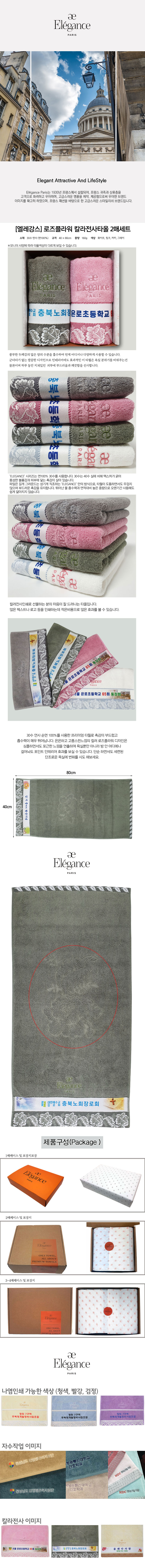 엘레강스 로즈플라워 칼라전사 타올 2매 세트