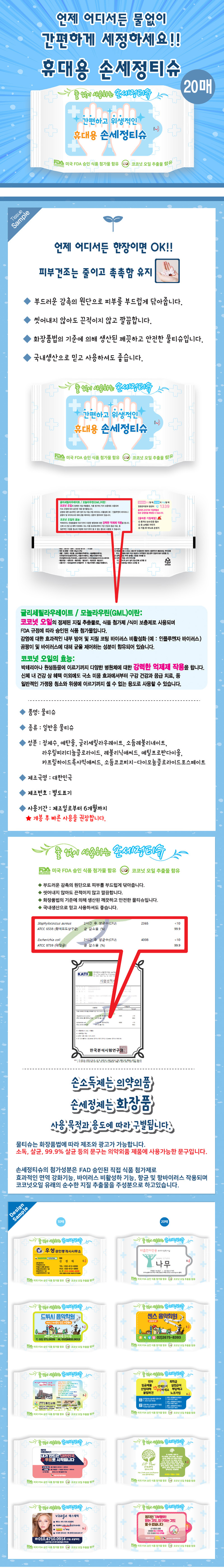 휴대용 손세정티슈 손세정 물티슈 20매