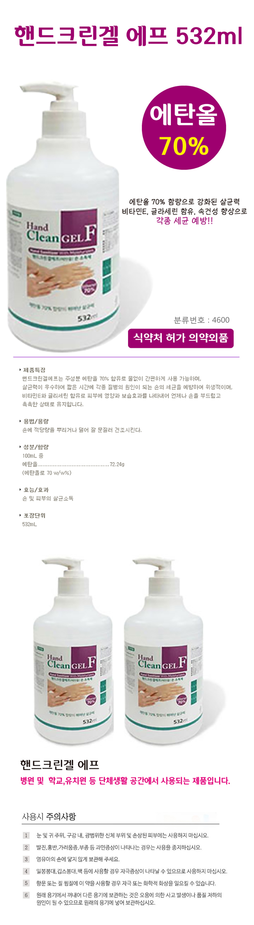 핸드크린겔 에프 532ml M 손소독제 / 에탄올 70%