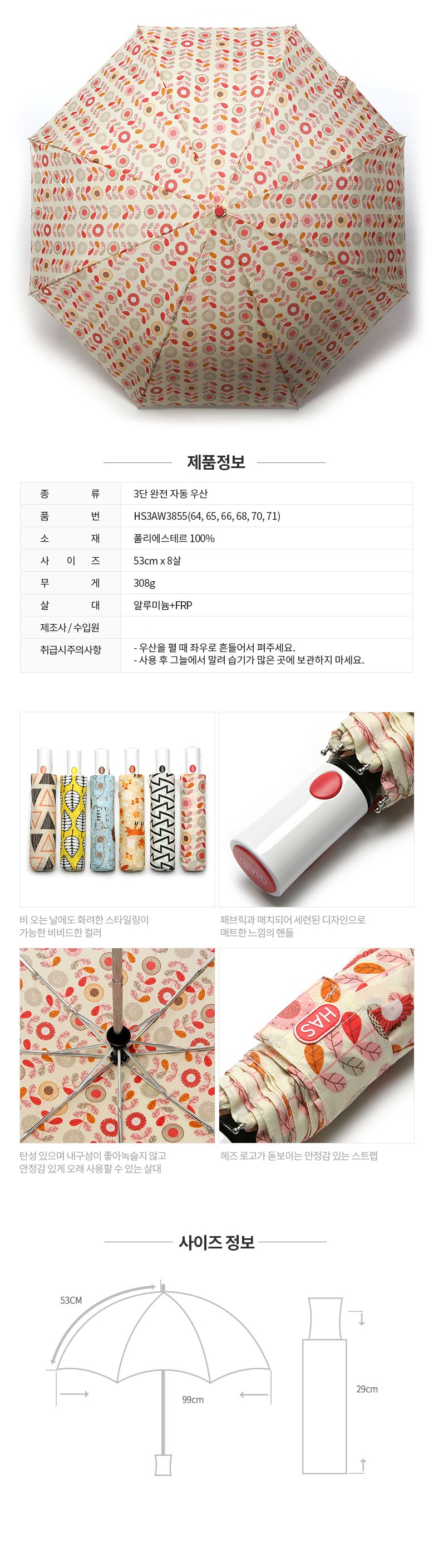 [HAS]헤즈 완전 자동우산 3단_HS3AW3855(65)
