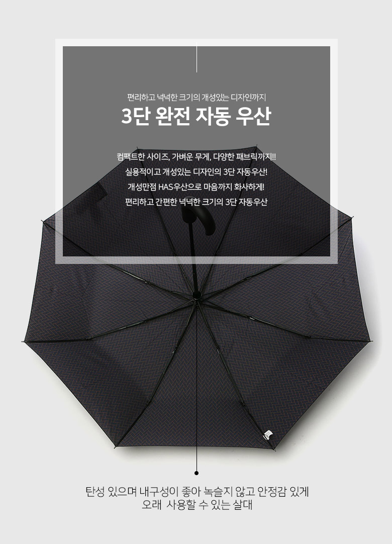 [HAS]헤즈 3단 J형 완전 자동 우산_HS3JA3860(HERRINGBONE)