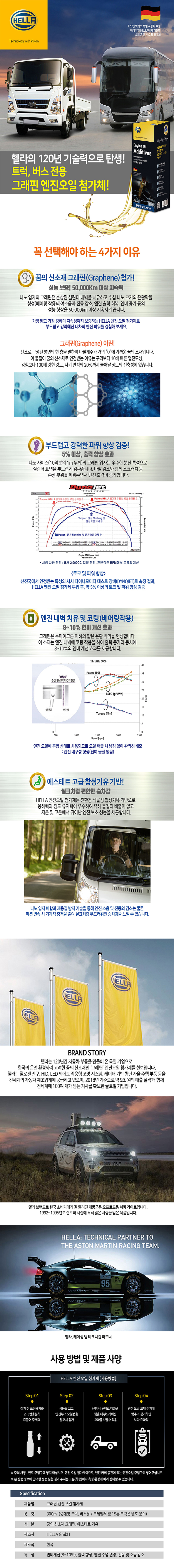 헬라,그래핀 엔진오일첨가제, 트럭 버스전용,연비개선,엔진 수명연장