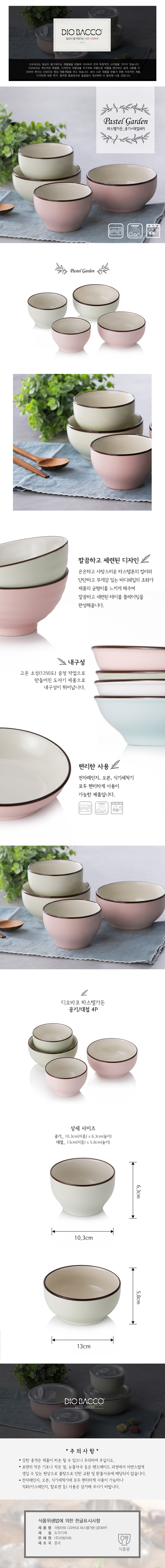 리빙아트 파스텔가든 도자기 공기대접 4P