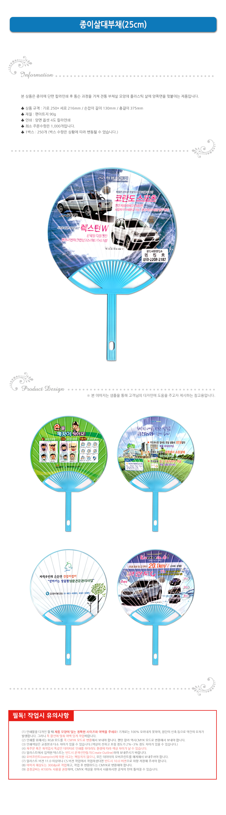 • [부채]종이살부채(25cm)대-종이안전살 ★ 편아트지 90g + PP / 양면UV옵셋인쇄 / 250개 1박스 ★ 계절상품으로 가격, 제작기간이 변동될 수 있음 ★ 500개 부터 제작가능 ★
