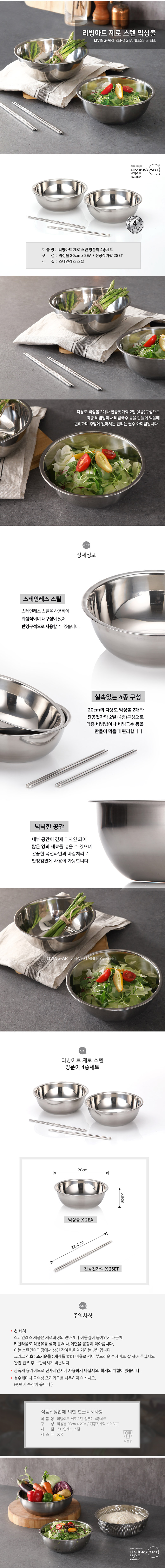 리빙아트 제로 스텐 양푼이 4종세트[스텐양푼2개+젓가락2개]