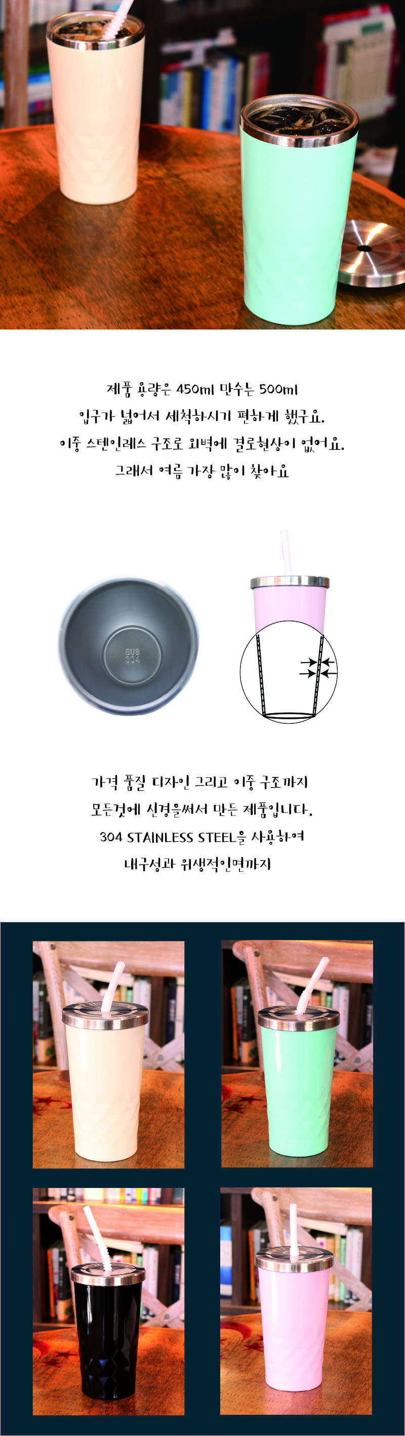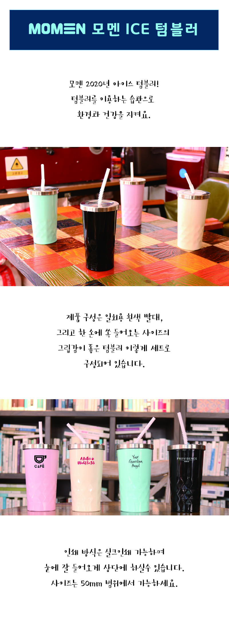 심플한 패턴 디자인과 내장 빨대로 가성비까지 갖춘 모멘 아이스 스텐 텀블러!