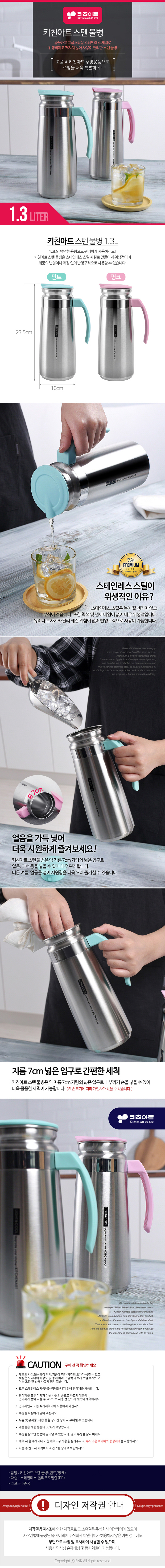 키친아트 스텐 물병 1.3L(손잡이형)