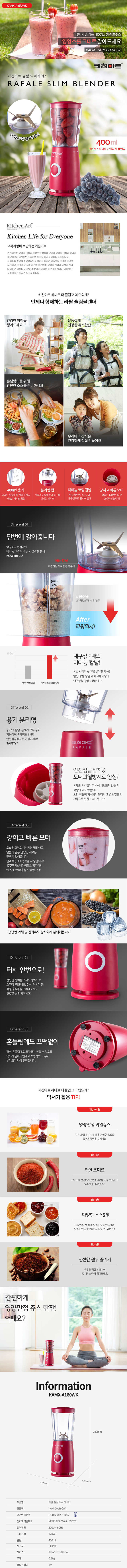 키친아트 라팔 슬림 믹서기 레드