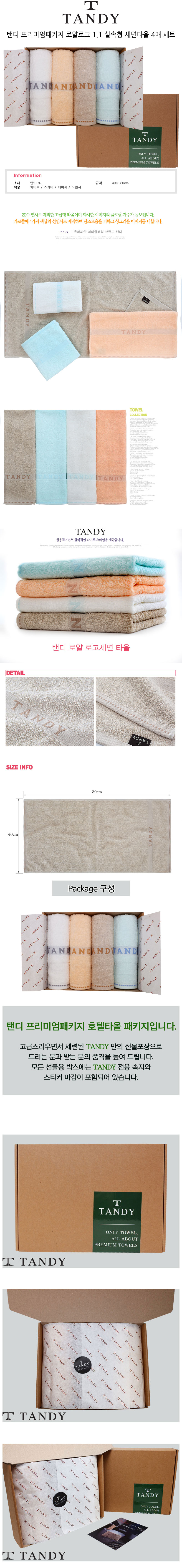 탠디 프리미엄패키지 로얄로고 1.1 실속형 세면타올 4매세트