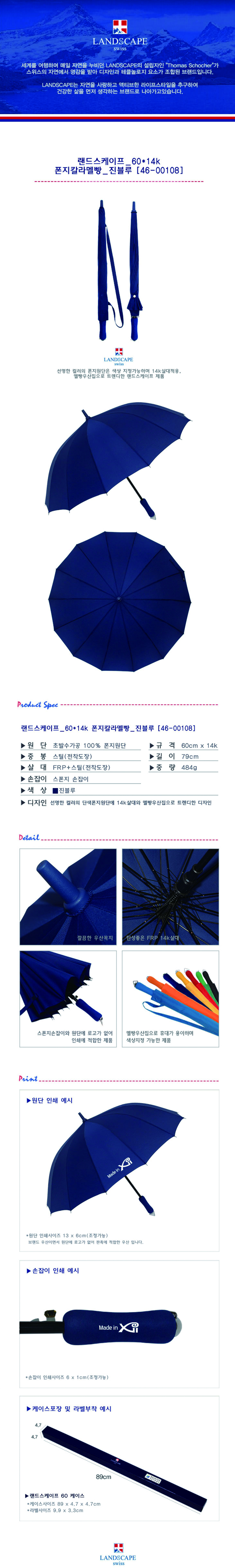 랜드스케이프우산 60폰지칼라멜빵 진블루 장우산