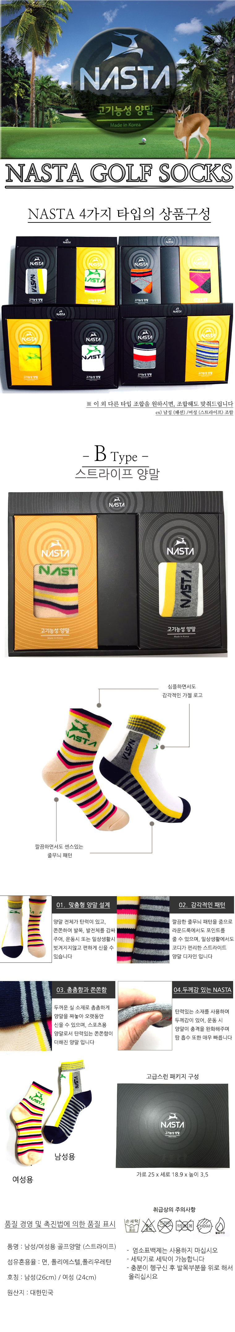 두툼한 소재의 스트라이프 골프양말