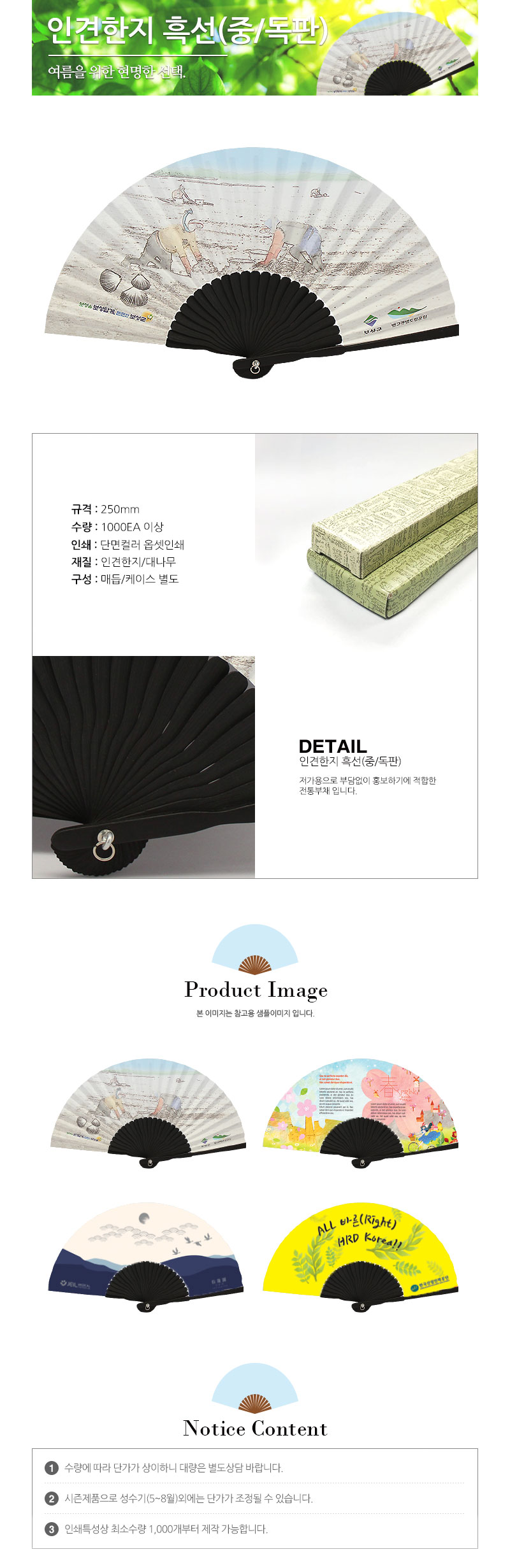 인견한지 흑선 (중/독판) 전통부채
