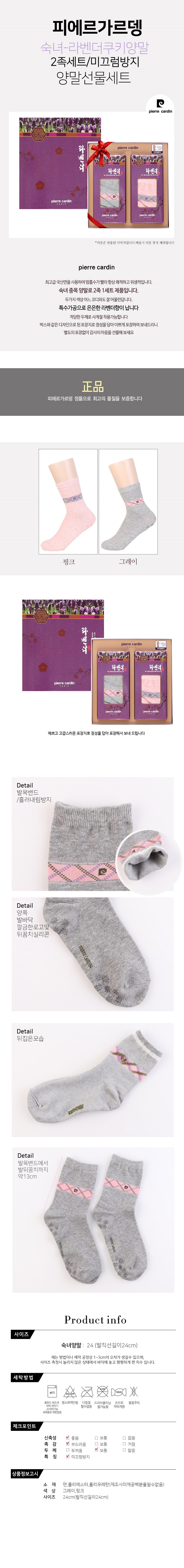 피에르가르뎅 숙녀양말 2족세트 라벤더 여성 양말세트 명절선물 선물세트