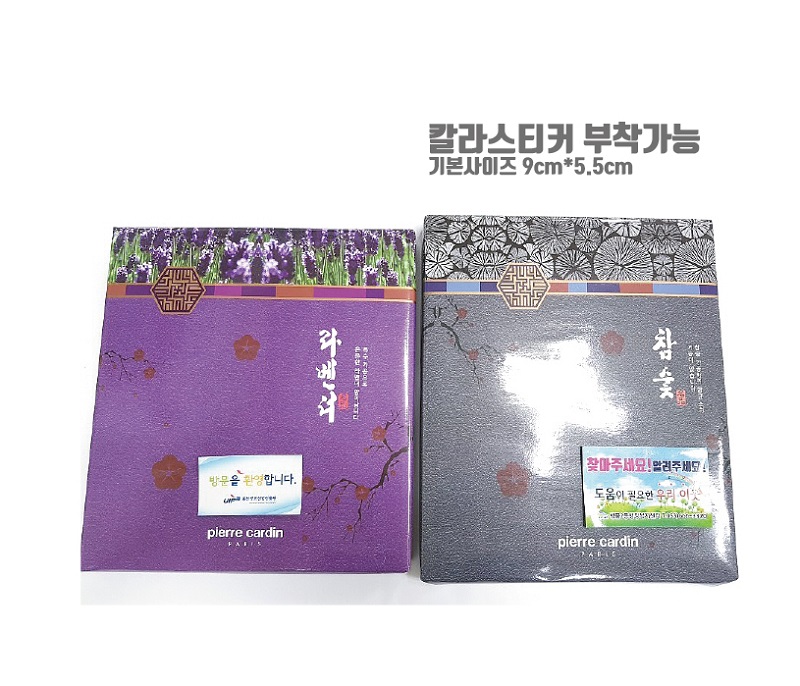 • 스티커제작 950장까지 15,000원 / 기본사이즈: 9cm * 5.5cm 스티커부착 개당 50원 별도