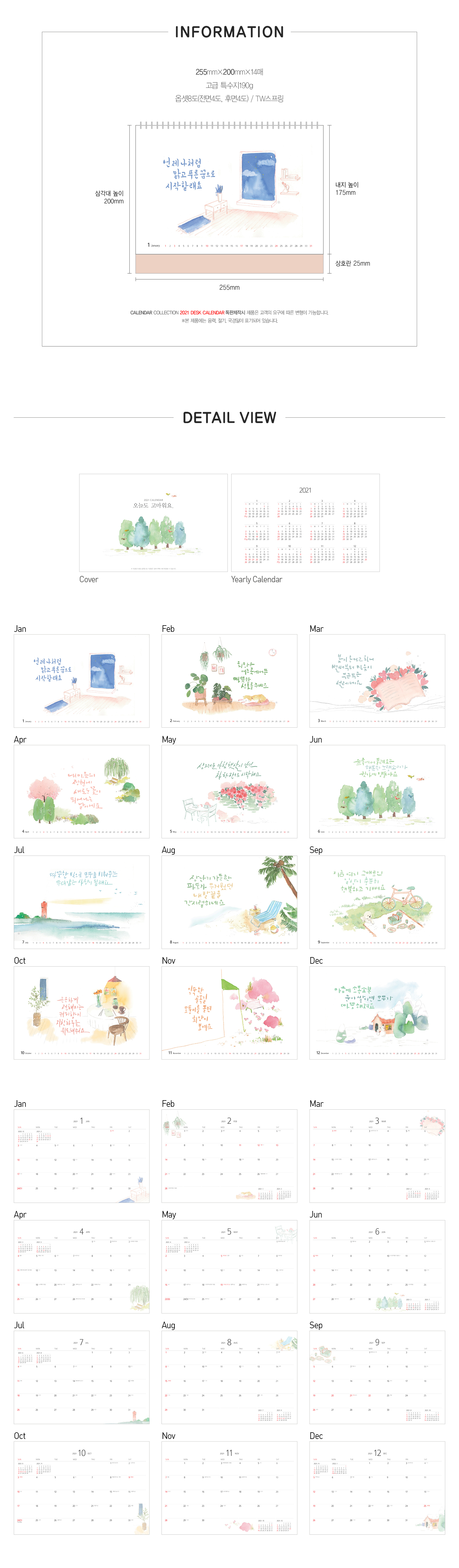 2021년 탁상달력/탁상캘린더/카렌다/오늘도 고마워요
