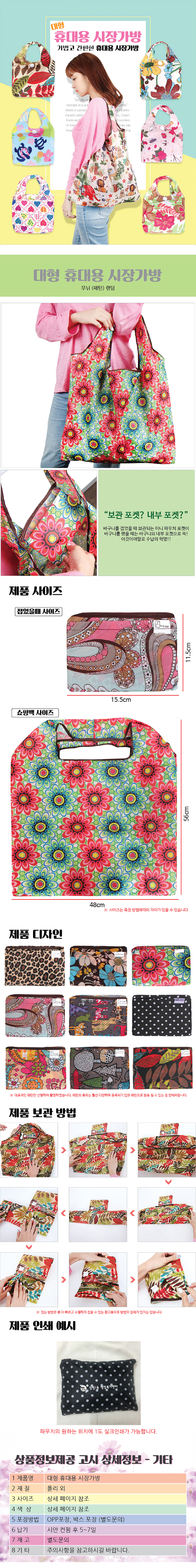 플라워접이식시장가방대형/간편접이식장바구니/대형휴대용시장바구니