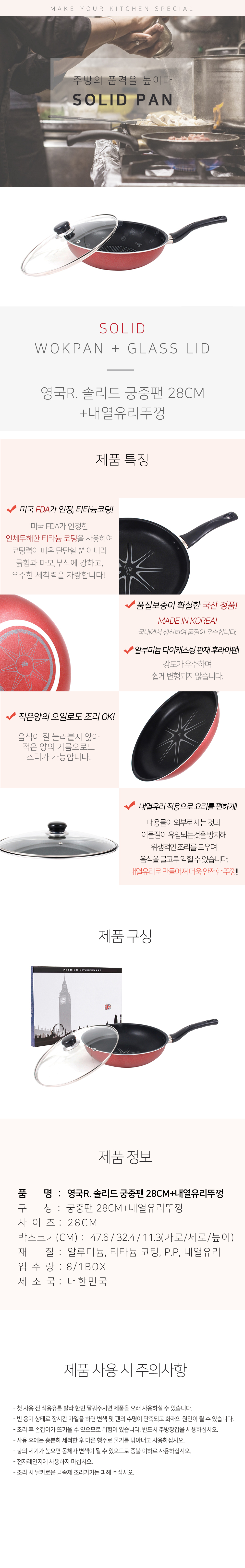영국R. 솔리드 궁중팬 28cm + 내열유리뚜껑