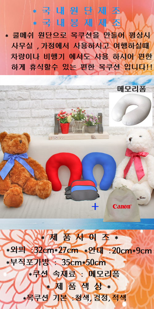 메쉬메모리폼목쿠션&안대&부직포가방set