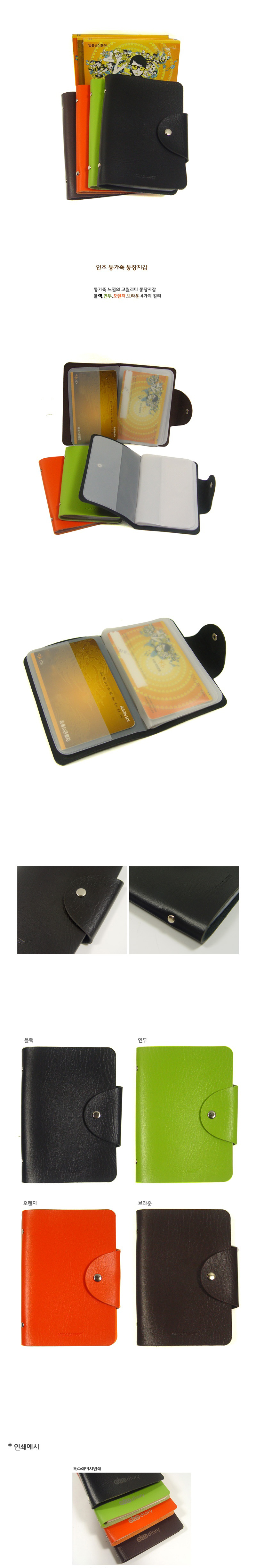 * 재 질 : 인조통가죽* 색 상 : 블랙,브라운,연두,오렌지 * 인 쇄 : 레이져인쇄 (연두색 제품은 레이저인쇄시 흐릿하게 보일 수 있습니다.)