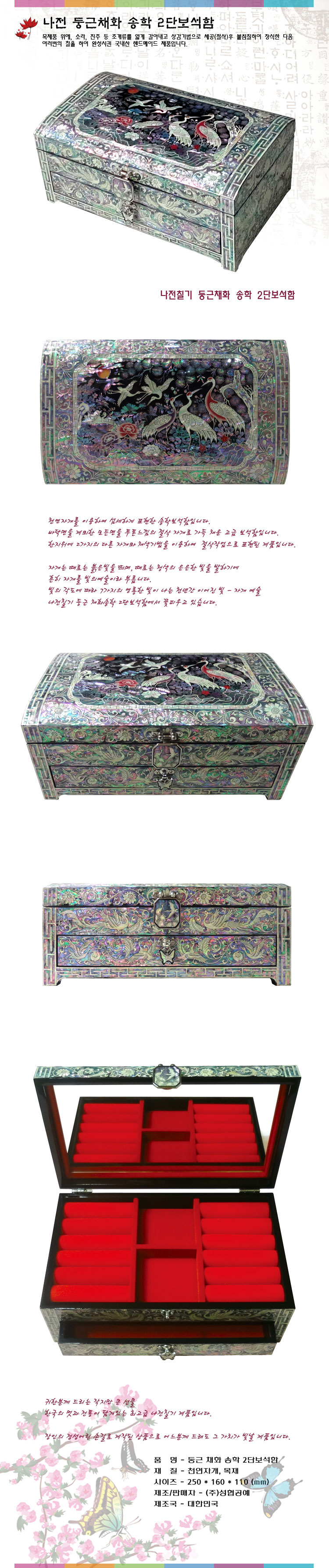 둥근 채화 송학 2단 보석함