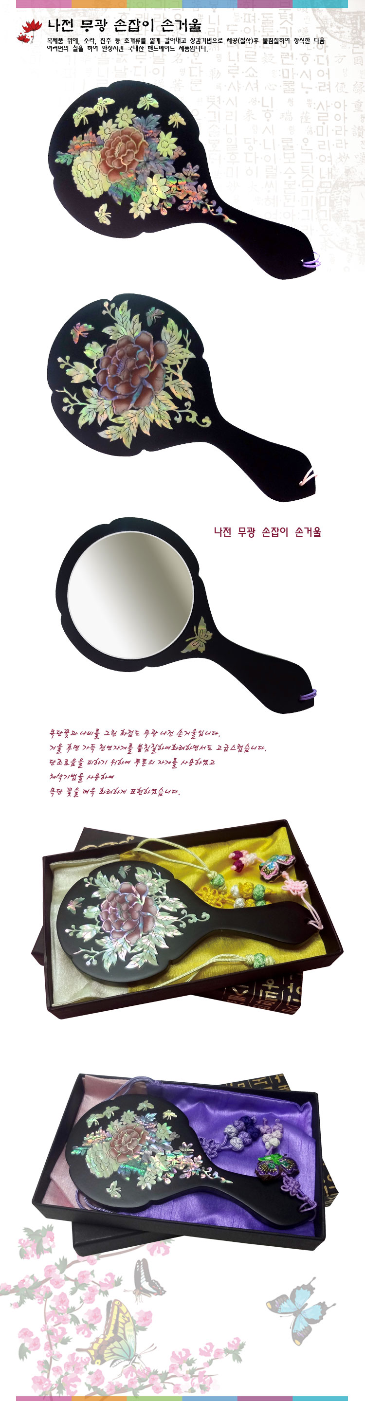 나전 무광 손잡이손거울